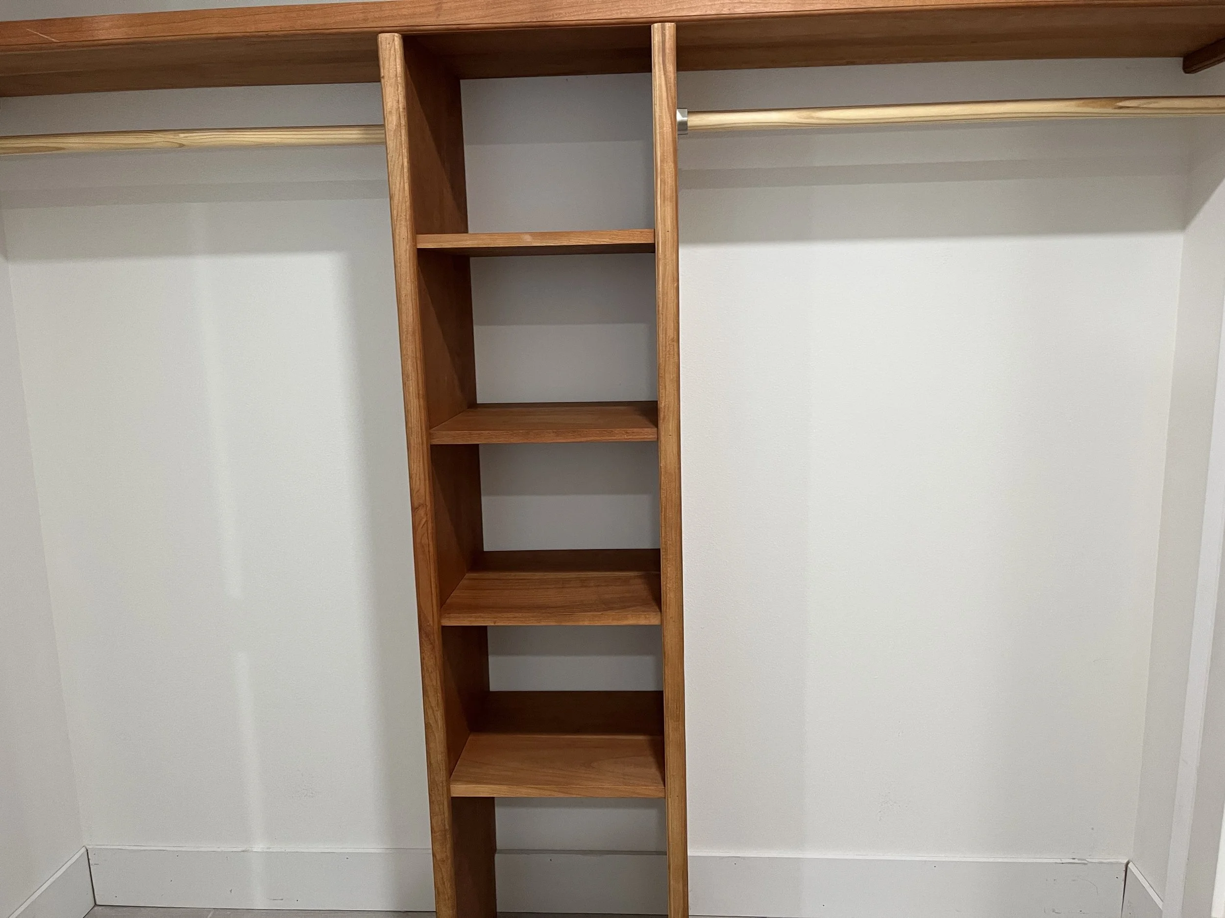 This custom mahogany closet organizer is built for strength, function, and long-lasting use. With adjustable shelving and solid wood construction, it offers reliable support for daily storage needs while showcasing the warmth and richness of real mahogany. Designed with precision and care, this built-in solution brings handcrafted quality to everyday living.