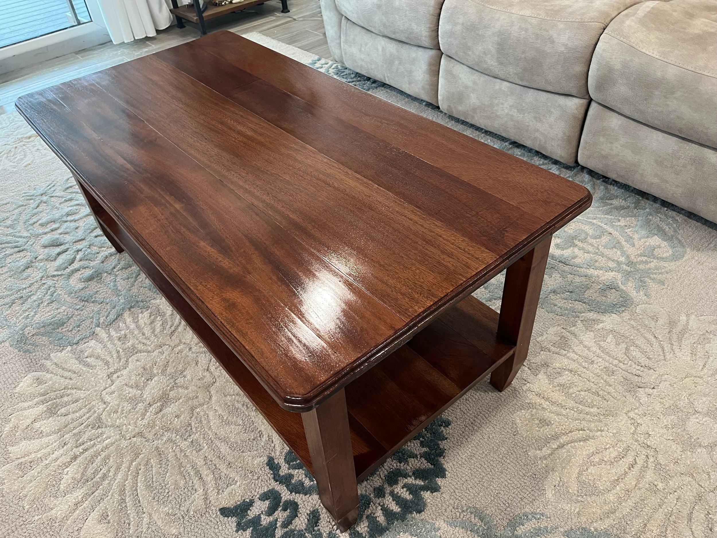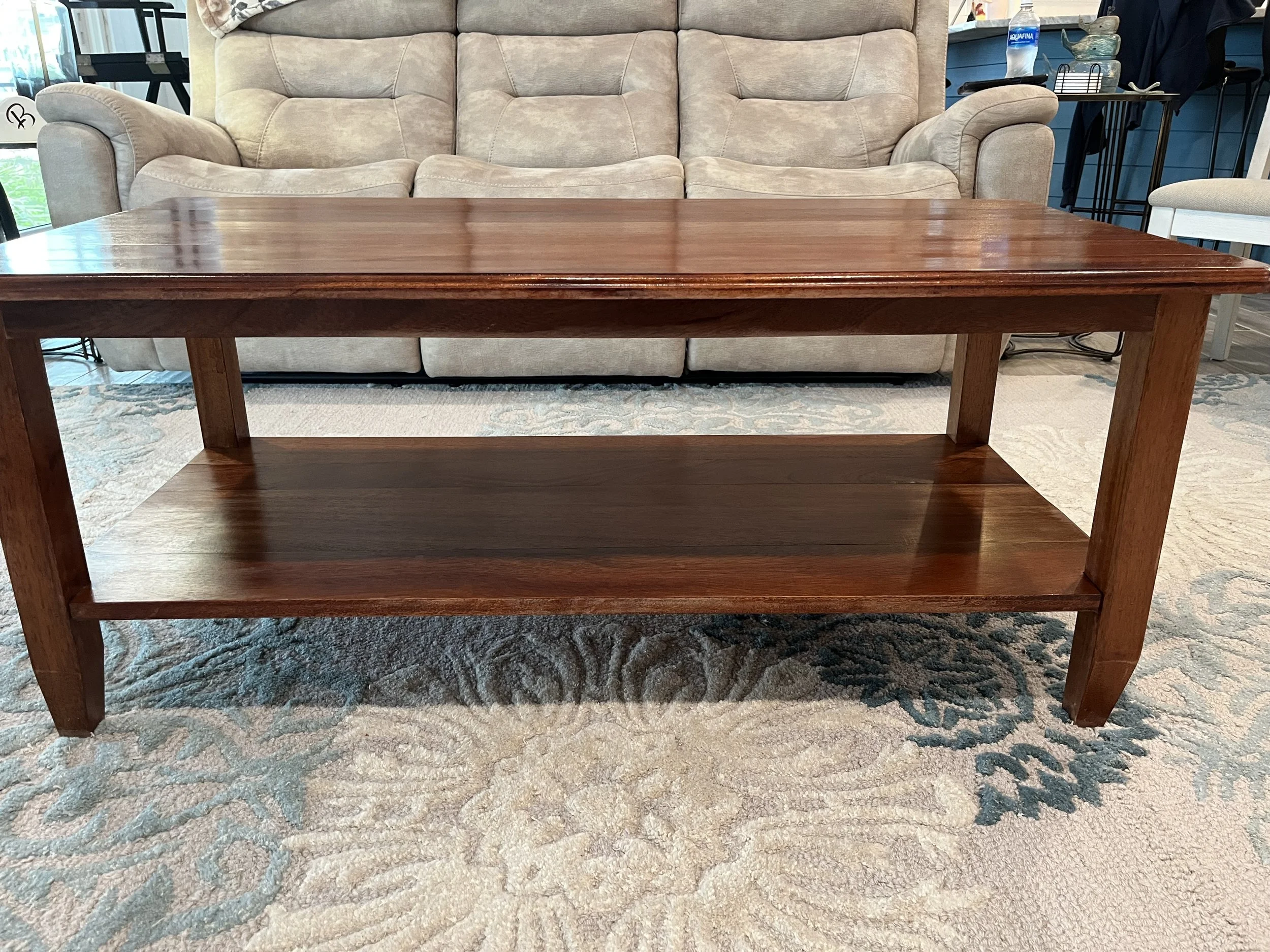 This custom mahogany coffee table showcases the natural beauty of solid wood with rich grain patterns and a smooth, hand-finished surface. Built with a focus on balance and proportion, it adds warmth and character to any living space. A functional centerpiece and a true example of handcrafted furniture, this piece is designed to stand the test of time.