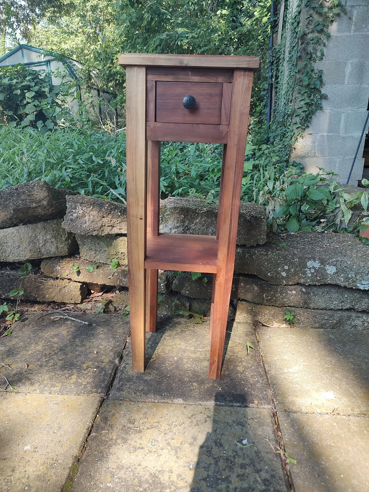 Black Walnut Niche Table $125 Height: 31”Width: 11-11.5” SquareSmall drawer with lower shelf. Email to Learn More!